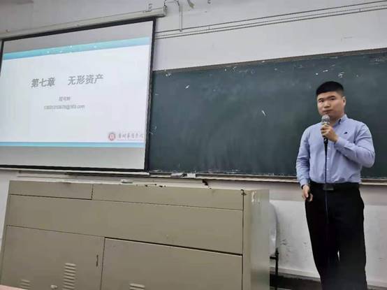 第二位授课老师是程可辉老师,他讲授的课程是《无形资产》。通过对无形资产的概述、初始计量和内部研究开发费用的确认与计量,以及无形资产的后续计量、处置的讲解,让学生更为细致地认识无形资产。课程的开始程可辉老师就引用习近平主席的话引出内容,详细分析了华为公司对5G技术的研发与之相关的财务处理。