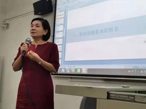 第四位授课老师是郭晨老师,她讲授的课程是《审计学》中的职业道德基本原则和概念框架。课程通过对安达信为安然虚构巨额利润并隐藏数亿债务,这个CPA帝国最终因失去信誉而轰然倒下的案例分析,进而得出要学会独立思考、具备明辨是非的能力、意识到审计职业所承担的社会责任、信誉是生存的基石的启示。
