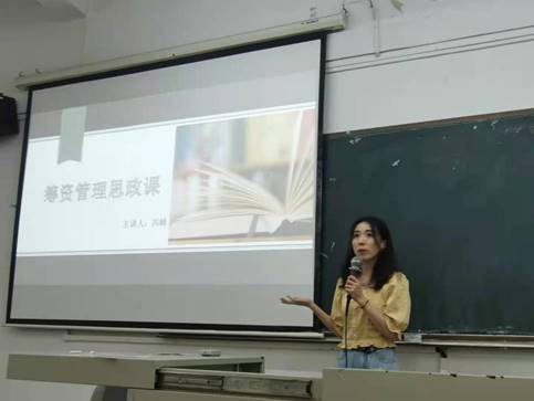 第五位授课的是冯婧老师,她讲授的是《筹资管理思政课》。开篇通过草船“借”箭的故事引出筹资管理的概念,提出问题启发学会思考并对学生的答案进行分析总结出诚信为本的思想品质。