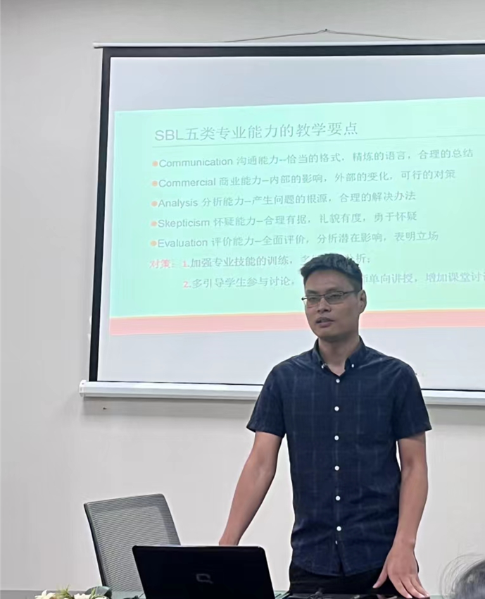 叶国安老师介绍了Strategic Business Leadership课程的教学要点和课程内容,同与会教师交流了在考试中学生的常见问题,并且重点强调了激发学生学习SBL课程的兴趣是非常重要的。