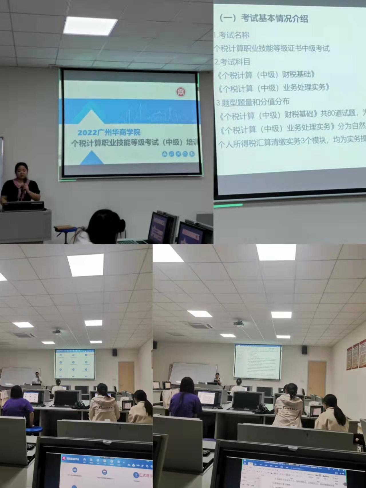 作为教育部“1+X”个税计算职业技能等级证书试点院校,为顺利完成此次个税计算职业技能等级证书(中级)考试,学院成立考试领导小组,精心组织培训与考务工作。考前培训由焦熙、丘晓琳玲、欧永豪三位老师负责,培训形式为“线上+线下”相结合的形式。老师组织同学们进行每日的习题演练,并在线上进行答疑。于10月25日组织线下培训,11月5日进行模拟考试。培训内容包括自然人税收管理扣缴端申报实训、经营所得预缴单项实训、个人所得税汇算清缴集中申报实训等模块。