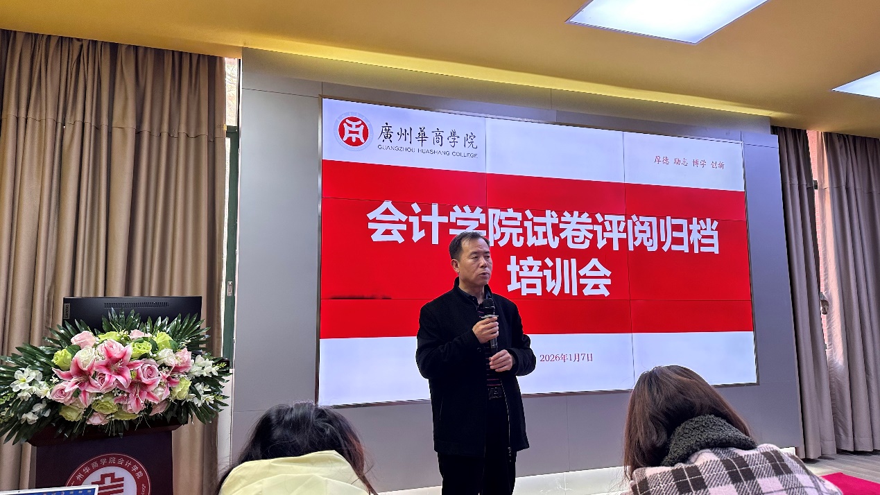 为规范教师阅卷工作,确保阅卷工作公开、高效,进一步提升试卷质量和教学管理的规范性,按照学校工作部署,2026年1月7日下午,bv伟德国际1946在学院报告厅召开了本学期期末集中阅卷归档培训会。学院领导、各系主任及全体专任教师参加了此次会议。主管教学工作副院长杨旻教授主持了会议。