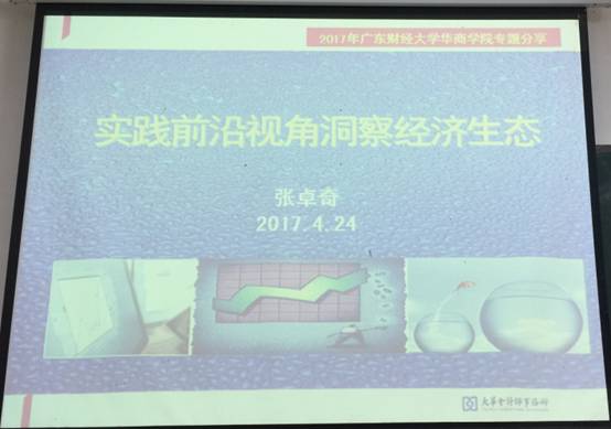 讲座伊始,张老师说之所以今天选择《实践前沿视角洞察经济生态》这个题目跟大家分享,是因为自己作为一名职业CPA,日常要做的工作除了帮企业完善财务、税务之外,接下来还有更重要的一个工作就是帮助企业洞察经济生态,同时处理企业发展的战略与资源的协同。张老师选择了近一年,特别是近半年的工作经历及阅读体会跟大家分享,他每天早上都有阅读的习惯,做关于国内与国际方面的阅读,国际方面是阅读国际权威媒体,然后在朋友圈中发布一条阅读感悟的信息,国际视野----洞察经济生态,每天都坚持这么做。今天讲座中用到的很多素材,也是取自他过去一年在朋友圈中和别人分享的一些比较关键、经典的素材。第二方面是关于工作中的体会,如他去年在美国做经调,今年1月在澳大利亚、新西兰做投资调查,3月在哈萨克斯坦做“一路一带”的投资调查,从某种角度上讲,这些都是关乎于生态。张老师称从我们工作的角度来讲,如果需要让自己更有话语权,离不开vision (视野)及action(行动),视野要拓宽,行动要能够支持企业去发展,这是在工作中要形成的一种指引。