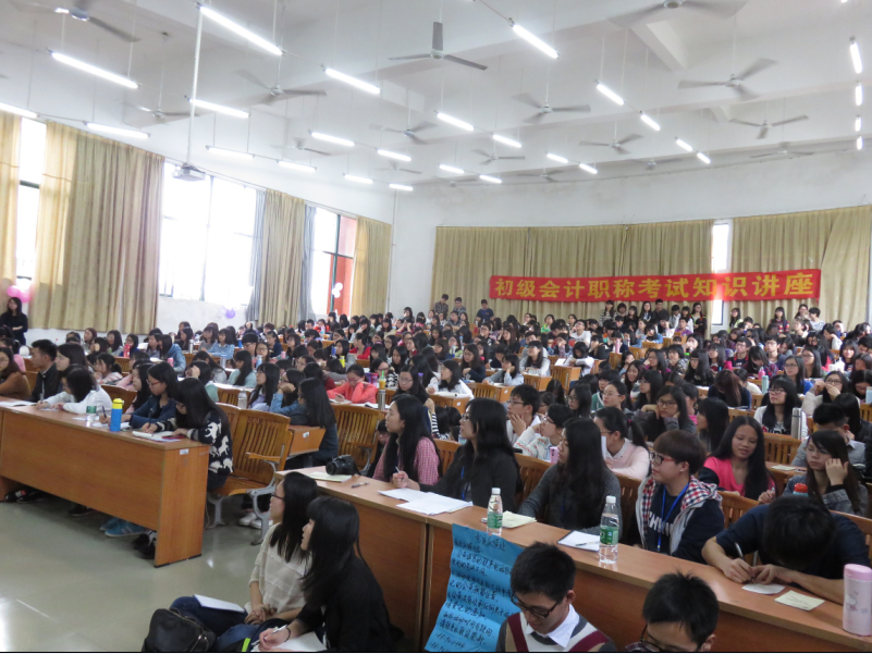 在主持人宣布下,讲座正式开始。陈教授首先为大家讲述了初级会计师职称的必要性,同时解答了为何要考取初级会计师职称的一系列问题,为大家勾勒出考证蓝图。随后,陈教授为在座的同学们详细地介绍了2015年初级会计职称考试的科目、时间和方式,并对考题做出相应预测。诙谐生动的演讲调动起了同学们的积极性,在提问环节,面对同学们的提问,陈教授耐心地为同学们答疑解惑,并对同学们的复习思路、学习计划、考试技巧做出相应指导和建议。