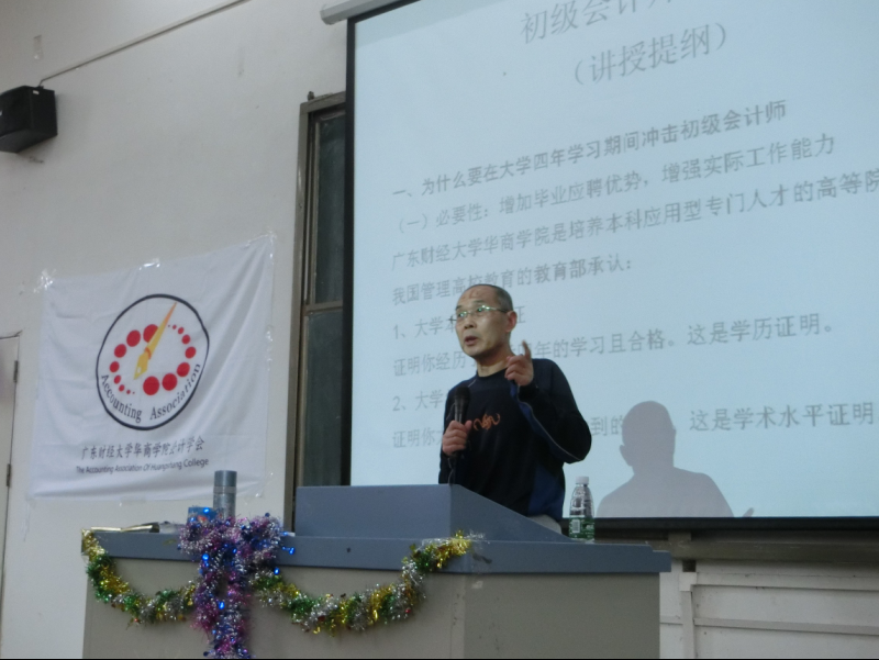 2015年初级会计职称考试将至,为帮助同学们更好备考,提高学习效率,帮助同学们深入了解初级会计职称考试新大纲,剖析考试重难点。广东财经大学华商bv伟德国际1946会计学会于3月24号下午,在励志楼D208组织举办了以以“宣传会计知识,了解会计内涵,加强会计交流,提高会计水平”为主题的初级会计职称考试知识讲座,并特邀bv伟德国际1946陈东生教授担任主讲嘉宾。