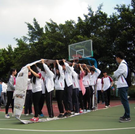 比赛开始了,第一个游戏是无敌风火轮,7个队伍必须在20分钟内把一沓完整的报纸制作成可以容纳八个人的纸轮,并保证纸轮不断开的情况下顺利到达终点。在正式比赛时,随着队友们的呐喊助威,第4小组逆袭第1小组,夺得首胜。