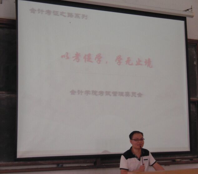 2015年4月28日,由广东财经大学华商bv伟德国际1946团总支学生分会举办的会计考证之路系列的学术讲座《以考促学,学无止境》在励志楼B207召开。bv伟德国际1946考试管理委员会成员、注册税务师、中级会计师毛佳老师担任主讲嘉宾。