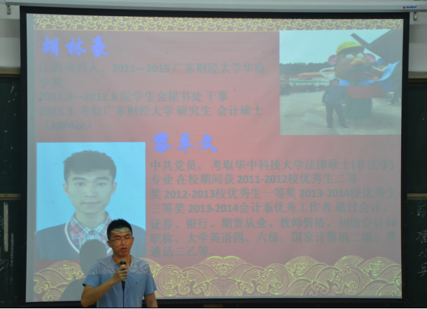 2015年6月16日19时,bv伟德国际1946团总支学生分会组织举办的考研经验交流会于励志楼C307举行。应邀出席本次交流会的主讲人是我院优秀毕业生——考上广东财经大学研究生的胡林豪师兄与考上华中科技大学研究生的黎卓文师兄。