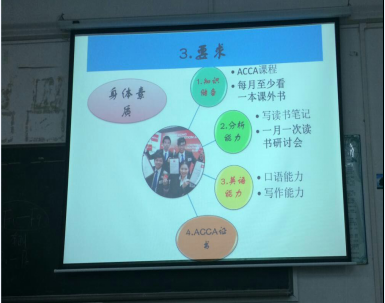 在会议上,马玉珍院长给ACCA班的同学详细地介绍了ACCA的专业课程,系统地分析了ACCA的就业前景,希望15级ACCA班同学们确定自我发展目标,合理安排大学生活。陈蒙梦班主任则着重对ACCA的学习规划进行了简单介绍,并且对同学们提出了5个方面的要求。
