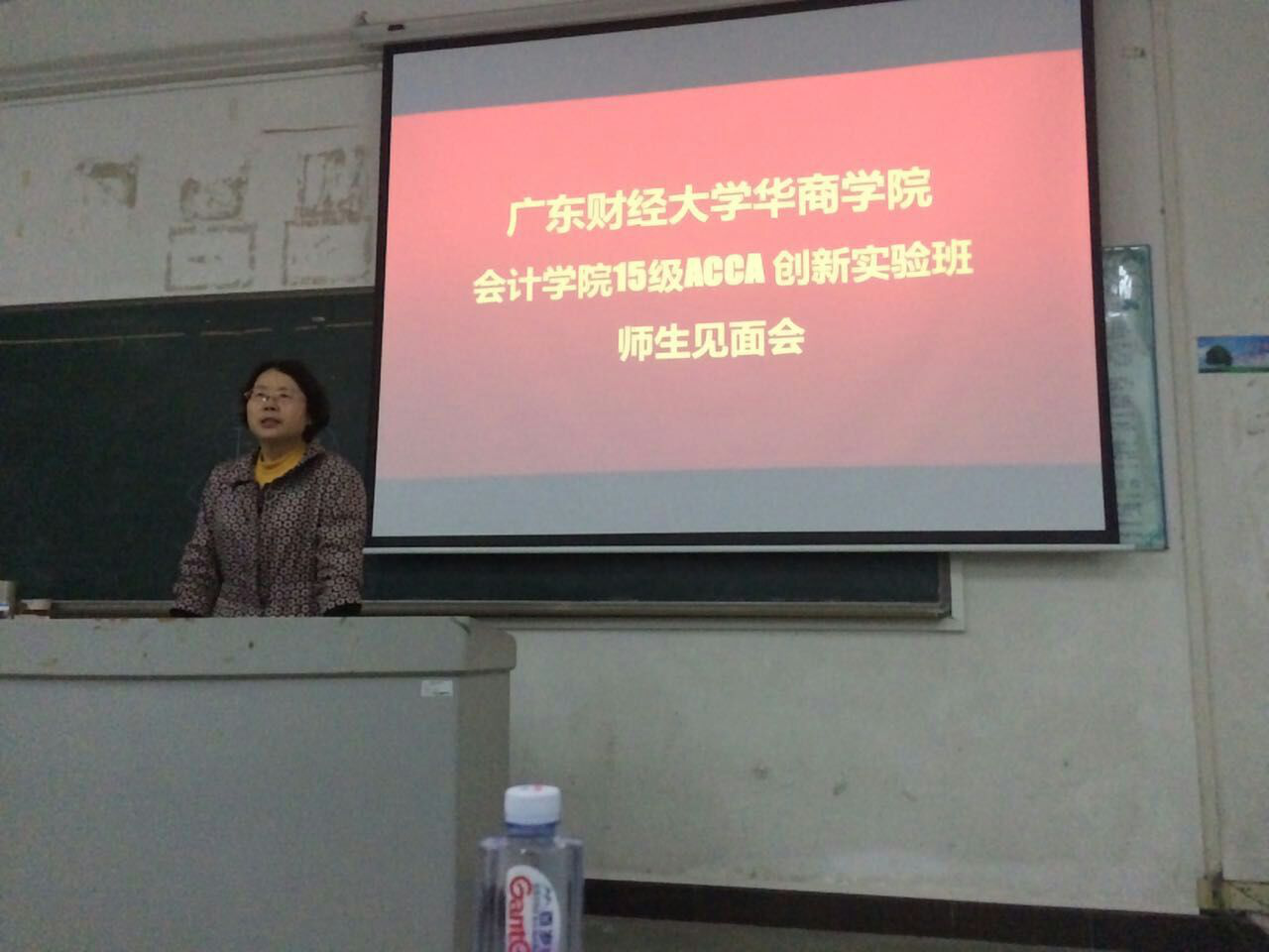 晚7点,广东财经大学华商bv伟德国际194615级ACCA创新实验班师生见面会在励志楼A102隆重举行bv伟德国际1946院长马玉珍、副院长巴雅尔、辅导员童蓉、班主任陈蒙梦等领导和老师出席了本次会议。