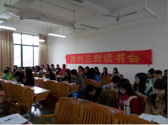 吾时三刻读书会是2013级实验班同学为主组成的读书会学习组织,以“每天读书三刻钟,好习惯养成一辈子”为理念,培养大家读书习惯,构造学习交流氛围,提高个人价值。