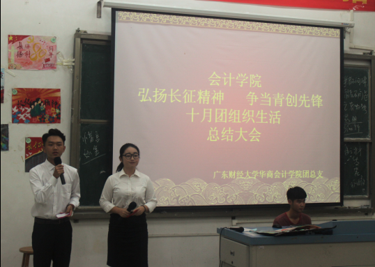 10月20日19:30,以“弘扬长征精神,争当青创先锋”为主题的bv伟德国际1946十月团组织生活总结大会在励志楼D208隆重举行。bv伟德国际1946团总支书记梁银雄,工商管理系团总支副书记刘杏诗,bv伟德国际1946团总支副书记林柔镟,bv伟德国际1946学生会主席李超佳,bv伟德国际1946学生会副主席黄博勋,工商管理系团总支学生会组织部正部长李海玲、副部长周芷珊,信息工程系团总支学生会组织部正部长叶志锋、副部长陆晓敏等嘉宾出席本次会议。
