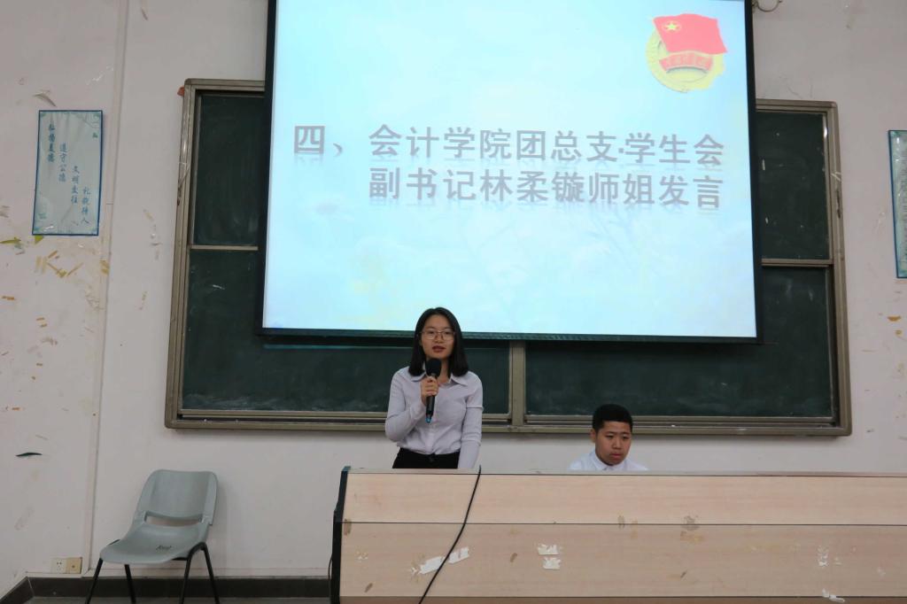 接着,团总支副书记林柔镟对上学期团学工作做了总结,并对新学期提出了新计划和要求。她强调:第一,在党建团建方面,积极配合学院进行“五四评选”、优秀团员干部评选活动以及每月开展团组织生活。第二,在学术学风方面,举行财会杯、知识富翁等专业知识竞赛,使广大bv伟德国际1946学生了解更多专业知识,端正学风,营造学习氛围。第三,在社会实践方面,开展敬老院、志愿支教等活动,丰富学生的课余生活,提高学生的全面发展素质。