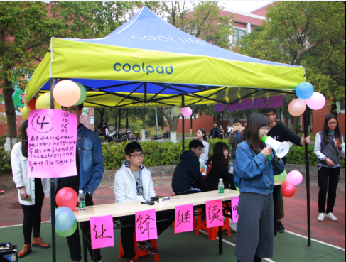 此次活动以小组形式参加,2人一组(其中一人需带眼罩),一共50组。在户外活动现场设有4个摊位。一摊为“携手共进迢迢路”摊位,工作人员在现场布置用矿泉水瓶和绳子摆出的曲折障碍路,蒙眼者在伙伴的指挥和协助下一同走完道路,没有走出规定赛道范围即可通过;二摊是“我心目中的雷锋”摊位,蒙眼者在同伴的指挥和引导下在一张白纸上画出自己心目中的雷锋(画出大致五官);三摊为“雷锋名言知多少”摊位,在名人名言ABCD选项中选出雷锋名言,并指导蒙眼者同伴选出正确的答案;四摊为“让锋继续吹”摊位,完成此前所有游戏后,蒙眼者摘下眼罩,并在眼罩上进行涂鸦。