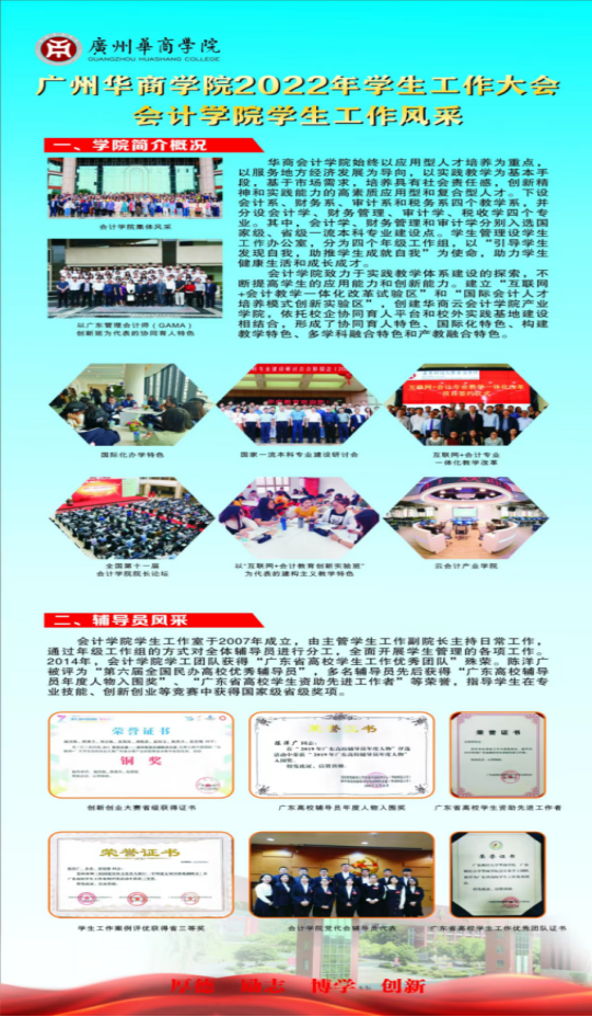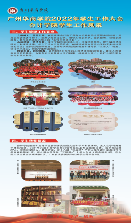 有这么一支工作队伍,他们以为党育人、为国育才为初心使命,以“引导学生发现自我,助推学生成就自我”为工作理念,秉承“博观约取,厚积薄发”的精神培养,坚持“招之即来,来之能战,战之能成”的工作作风,坚持教育领先、管理从严、支持迅速、服务到位的原则,以思想政治价值引领为“主线”,以职业生涯规划和心理健康为“先导”,以课堂、班级、宿舍为“阵地”,以校园文化品牌建设为“抓手”,以形式多样的主题教育活动为“载体”,围绕人才培养质量着力提升学生综合素质;围绕学生成长成才着力提升学校教育管理服务水平。