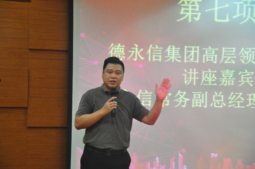 颁奖典礼结束后,特邀德永信集团副总经理曾海明先生为参会学生进行就业规划专题讲座。曾总向同学们详细介绍了深圳德永信财税集团的发展历程、文化特点、员工培养模式、发展前景以及招聘的职位及福利,并诚挚邀请同学们加入深圳德永信财税集团。最后谈到就业形势,曾总对同学们提出了几点要求:努力学习,不断提高自身素质,积极面对社会“内卷”;将压力转化成动力,以更好地立足社会;提前做好职业规划,选好、做好第一份工作;希望同学们能珍惜工作机会,不轻易放弃。