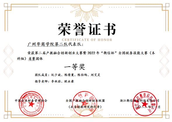 由bv伟德国际1946税务系李秋茹、欧永豪老师指导,黄汝德、郭秋雅、刘雯棋、郑少芳组成的代表一队与纪少旋、陈倩蔓、陈怡绚、刘艾灵组成的代表二队克服各种困难,勤奋备赛、沉着应赛,均荣获省赛团体一等奖。我校参赛团队预赛成绩排名全国前5%,成功晋级全国总决赛。