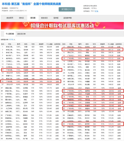 最终,伟德国际victor1946以团队总分名列全国第二名的好成绩获得团队一等奖;我校的参赛选手中,共有9名选手的个人分数位列前100名,他们将获得“全国个税师(个税普法大使)百强”的荣誉,尤其是21本会计学(专升本)7班的王磊、黄超诗同学,个人得分分别排全国第4、第10名。