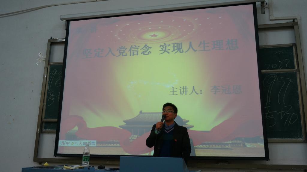 2015年12月20日早上8点30分,bv伟德国际1946学生第二党支部书记李冠恩老师在励志楼D208对本支部的全体党员上了一场精彩的党课。