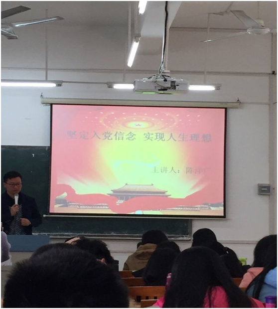 紧接着,陈洋广书记为我们讲解了如何坚定入党信念实现人生理想:第一,我们要树立正确的入党动机;第二,要有理想和信念,因为理想和信念是人生的坐标与导航;第三,以实际行动争取入党。并为我们讲解了当前共产党员理想信念存在的几个问题,比如有的党员理想信念发生动摇,不信马列信鬼神、不信科学信迷信不信组织信个人、不走正门走后门等。