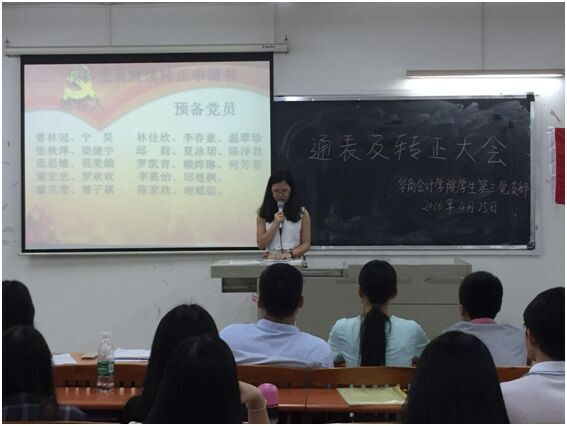 2016年4月25日晚上18:00-21:00,bv伟德国际1946学生第三党支部在厚德楼C409召开了本期入党重点发展对象的通表大会暨中共预备党员的转正会议。此次会议由纪检委员曾林冠同志主持,参加会议的有bv伟德国际1946学生第三党支部书记袁善福老师、支部59名学生党员以及20名入党重点发展对象。