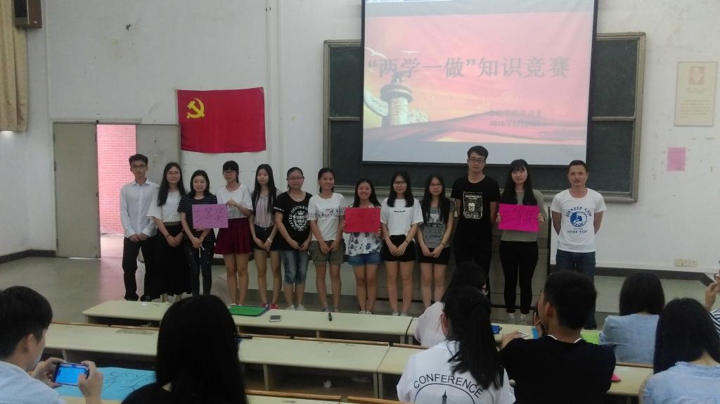 2016年5月24日星期二下午,为了响应学院党组织的号召,bv伟德国际1946学生党支部所有在校党员在励志楼A栋408教室进行了主题为“两学一做”的知识竞赛活动。bv伟德国际1946党总支组织委员叶振斌老师和bv伟德国际1946学生第三党支部书记袁善福老师也出席了本次活动,并对此活动进行了指导和监督。活动分为笔试和小组答题两部分进行第一部分由温翠珍同志主持,第二部分由赖烨琳同志主持。