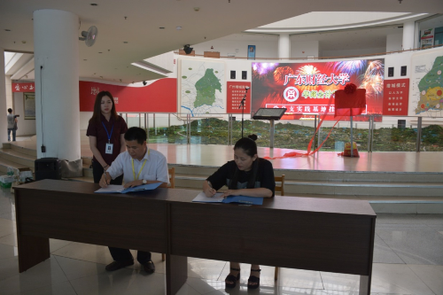 接着,增城区图书馆王馆长志文与华商bv伟德国际1946党总支副书记许娜进行协议签署。副局长邹运房、馆长王志文、华商学院党委党委吕书勉、党总支副书记许娜四人共同为华商bv伟德国际1946党总支实践基地牌匾进行揭牌。