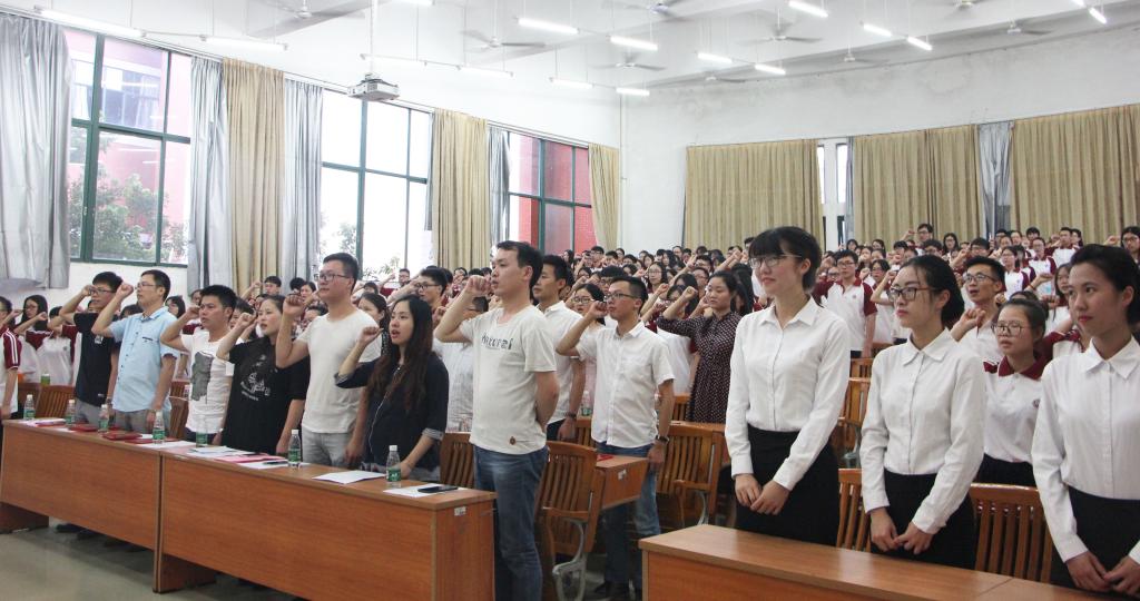 在激动人心的颁奖仪式之后,吴泽佳老师上台带领新党员入党宣誓,老党员重温入党誓词。许娜老师上台致辞,她先对获奖人员和新党员入党表示热烈的祝贺和欢迎,说道:“回顾中国共产党95年辉煌历程,我们倍感自豪;回顾华商十年历史,我们倍感自信。在党委的领导下,全面贯彻党的方针,使我校党的建设,思想政治的建设取得了较好的成绩。”并提出了三大要求:一是希望党员们发挥先锋模范作用,真正成为广大师生的榜样,努力践行社会主义核心价值观。二是深入践行“两学一做”,深入学习和贯彻习近平总书记的系列重要讲话精神。三是加强党的建设,继续完善党的管理制度。