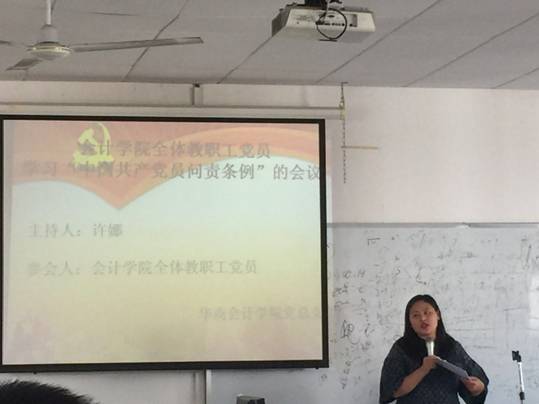许副书记强调学习《中国共产党员问责条例》的目的。党的十八届三中、四中、五中全会相继就“全面深化改革”、“全面依法治国”、“全面建成小康社会”进行了专题研究,近期刚结束的六中全会以制定修订两个文件稿为重点专题研究“全面从严治党”,“四个全面”战略布局就都分别通过一次中央全会进行了研究部署。然而早在2016年6月28日,中共中央政治局已经召开会议,审议通过了《中国共产党员问责条例》。《问责条例》的出台,也标志着中国共产党全面从严治党坚定决心和维护党的纪律、推进党风廉政建设的执政信心,充分展现了共产党人的担当精神,所以我院党总支召集全体教职工党员学习。
