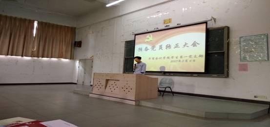 毕业季将至,毕业班学生党员都集中在本周回校参加毕业论文答辩。bv伟德国际1946学生第一党支部预备党员转正大会也于2017年05月06日下午5:00在励志楼A108正式召开。会议由支部纪检委员曾林冠同志主持,支部书记袁善福老师和86名学生党员全部出席本次会议。