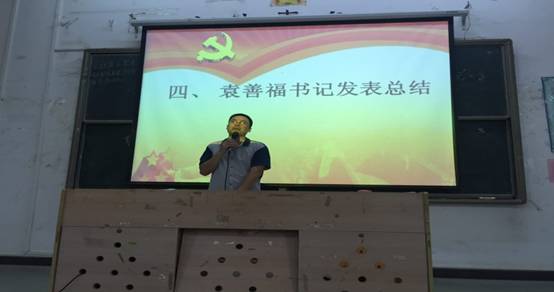 会议最后,支部书记袁善福老师对大会进行总结,并着重强调了两点内容。一是党籍转出问题,希望各毕业班的党员同志们要对此问题高度重视,因为党籍是跟随各党员同志一辈子的资料,必须重视起来。二是希望各党员同志在今后的生活和工作中始终要树立起党员榜样,坚持党员的优良工作作风,坚持关注和学习党的各项基本方针政策。
