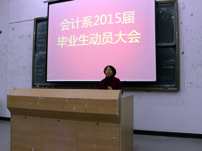 晚上7点,广东财经大学华商学院会计系2015届毕业生动员大会在励志楼B207隆重召开。会计系主任马玉珍教授、副主任柳学坤教授、伟德国际副主任许娜老师以及全体毕业生辅导员出席本次大会。本次会议由童蓉老师主持。
