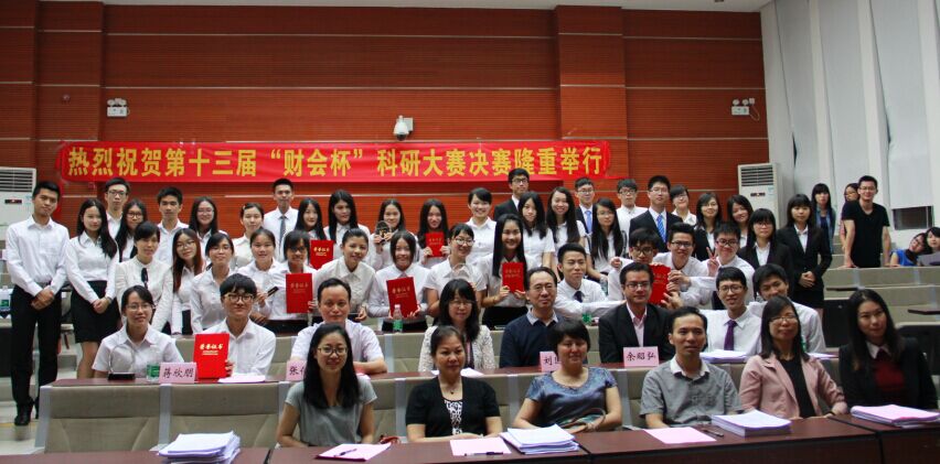 2015年5月13日18点30分,由广东财经大学bv伟德国际1946主办的第十三届“财会杯”科研大赛决赛在其北校区北3-103研究生学术报告厅隆重举行,我院的刘彩兰老师应邀担任本次大赛的评委之一。我院代表队伍Super Team队(队长:李东明,队员:邓锦兴、黄敏仪、黄慧娴)在广财大总决赛的舞台上力战四路群雄,表现优异,最终获得“三等奖”的好成绩,只是以微弱的差距落后于获二等奖广东金融学院。