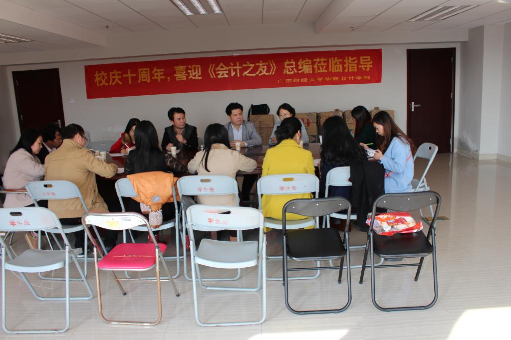 2015年12月25日,国家一级期刊《会计之友》杂志社笑雪主编应邀参加翌日举办的华商学院10周年校庆。当日下午,bv伟德国际1946特别邀请笑总编与bv伟德国际1946多位专业课教师在行政楼607会议室召开了一场主题为“论文写作规范和当前的财会热点参考选题”的学术交流会。bv伟德国际1946的领导、教研室正副主任及教师代表参加了交流会。