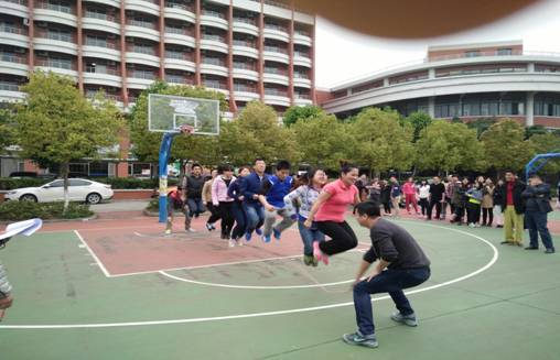 活动分为投篮接力与集体跳绳两个比赛项目。男女教工们以饱满的热情积极参与活动。首先进行的是投篮接力比赛。比赛的时间五分钟,在五分钟内按照比赛规则投进最多篮球的队伍获胜。经过队员的精彩的配合与团结一致下,我院选手在规定的时间内投进了20个球,稳居该项比赛榜首。