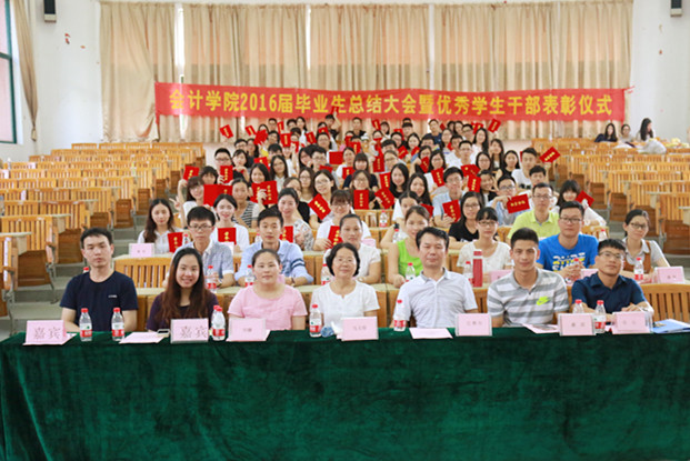 最后,杨李军老师宣读了《广东财经大学华商bv伟德国际1946关于表彰优秀学生干部的决定》。在激昂欢快的乐曲声中,bv伟德国际1946领导为2016届优秀学生干部颁发了荣誉证书。在这庄严而又光荣的时刻,学子们脸上洋溢着灿烂的笑容,掩饰不住内心的喜悦,井然有序地列队登上主席台接受与领导老师的合影留念,一次握手、一个微笑、一声祝福,收获的喜悦在这一刻悄然定格,成为毕业生记忆中最美好的映像。