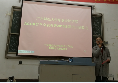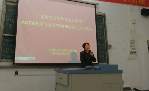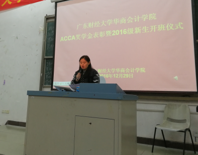 12月29日晚上7点,华商bv伟德国际1946ACCA奖学金表彰暨2016级新生开班仪式在励志楼D208隆重召开。bv伟德国际1946院长马玉珍、副院长许娜,中博诚通董事师韫、大区经理杨智浩、教学部经理罗金龙以及ACCA各年级辅导员、班主任和全体学生参加了本次大会。
