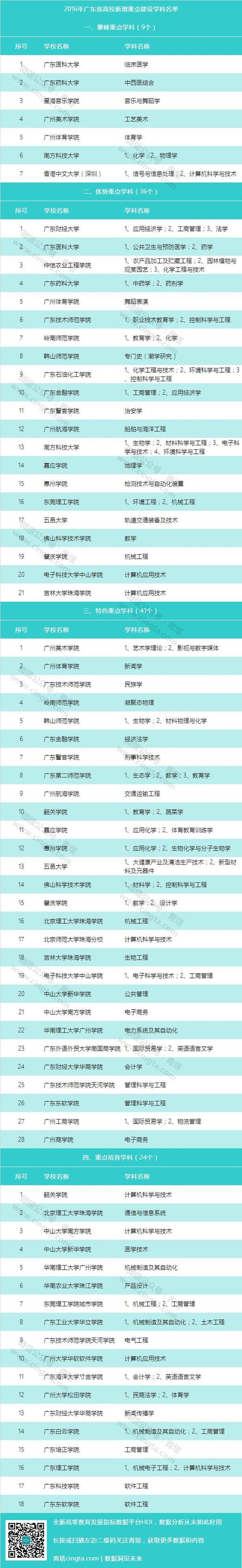 据悉,本轮新增的110个重点学科,覆盖了47所本科高校,有地方本科高校,也有民办独立学院。其中,广东医科大学等高校的9个学科入选“攀峰重点学科”;我院母体学校广东财经大学等高校的36个学科入选“优势重点学科”;包括我院“会计学”在内的41个学科入选“特色重点学科”;我院“新闻传播学”及其它高校共24个学科入选“重点培育学科”。下面是详细入选名单: