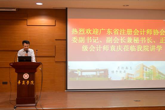 2018年4月12日下午2:30,应bv伟德国际1946的邀请,广东省注册会计师协会党委副书记、副会长兼秘书长、正高级会计师袁庆在图书馆学术报告厅为bv伟德国际1946师生举办了一场题为《新时代广东省注册会计师行业发展概况及中国注册会计师考试制度介绍》的讲座。讲座由bv伟德国际1946巴雅尔副院长主持;广东省注册会计师协会副秘书长唐祝光、考试培训部副主任黄晓、信息部副主任魏硕及朱怡豪作为嘉宾莅讲座现场,bv伟德国际1946部分教师代表及200多名学生聆听了讲座。