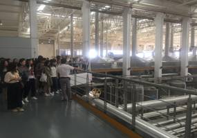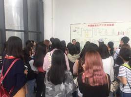 老师和同学一行人在自动化生产车间获得了珠江啤酒工作人员的接待,看了珠江啤酒的宣传片并了解企业生产经营情况和啤酒流水生产线。之后进入生产线,进距离观看生产设备和报安系统,了解珠江啤酒生产全过程。