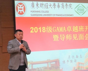 GAMA会长林斌教授在发言中,首先传达了两会关于培养应用性人才的国家战略。林会长指出,应用性人才的培养强调多技能。职业教育改革指向的1+X,是强调本科教育应用化非常重要的举措。“1”就是本科文凭,“X”就是证书、技能。考虑到学生的时间和精力,建议加1个证书比较务实。GAMA非常重要的使命之一是立人,即培养人才。“会计+大数据”或“会计+人工智能”是未来的发展趋势,即以会计为主,以大数据或人工智能作为辅助的手段。林会长接着分享了德国哲学家马克斯·韦伯《新教伦理与资本主义精神》一书中的“Asceticism”(苦行、修行)精神。林会长认为,苦行是《新教伦理》一书中非常重要的概念。该词的本意来自于希腊语,即练习和修行。任何一种宗教,要追求真理,苦行都是得道非常重要的手段。书山有路勤为径,学海无涯苦作舟。任何人在专业上的成就,也都与苦行和努力有关。希望在座GAMA班同学为了未来的成功更加用功和努力。