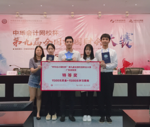 2019年5月23日,由中国高等教育学会高等教育分会和正保远程教育主办的“中华会计网校杯”第九届全国校园财会大赛广东省复赛在广东金融学院举办。本次大赛共有来自不同学校的21支代表队伍参加,其中包括广东财经大学、广东金融学院和广东技术师范学院等高校。华商bv伟德国际1946梁锐豪、何绮婷、庄晓璇三人组成的华商学院代表队在众多高校学子中脱颖而出,荣获广东省复赛特等奖,并将代表广东省参加11月全国总决赛。指导老师何子昉和罗永桂获得“优秀指导老师”称号。