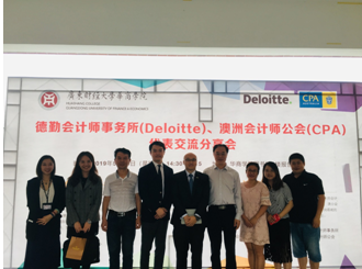 2019年5月28日下午,德勤会计师事务所华东审计主管合伙人Lawrence Lam、人事代表Sylvia Li、澳洲会计师公会高级业务拓展经理Max Shao莅临华商学院为我校会计学(国际双语班)学生开展主题为“德勤会计师事务所及澳洲会计师公会的个人职业发展”的交流分享会。广东财经大学华商学院副校长兼bv伟德国际1946院长陈美华教授、bv伟德国际1946副院长巴雅尔、副院长侯春娟等领导嘉宾出席了交流分享会。会议由bv伟德国际1946陈蒙梦老师主持。