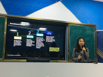德勤会计师事务所人事代表Sylvia Li向同学们介绍了加入德勤会计师事务所需具备的基本条件,如外语水平、诚信品质、肯干精神、沟通能力、团队协作能力、抗压能力等;Sylvia Li还现场分享应聘者应如何在简历中凸显亮点及面试技巧。Lawrence及Sylvia Li一致强调:德勤招人,不限名校,不限专业,德勤的大门向所有非985、211高校的毕业生敞开、向所有专业的毕业生敞开,德勤也欢迎华商学院的优秀学子加入,这极大鼓舞了在场学生的热情与信心。