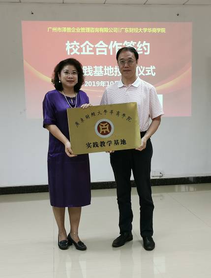 2019年10月11日,华商学院副校长兼bv伟德国际1946院长陈美华教授、财务系杨俏文副主任、办公室周书域主任以及李晶菁老师、吴水永老师前往广州市泽普企业管理咨询有限公司(以下简称泽普)参加实践教学基地签约及授牌仪式。