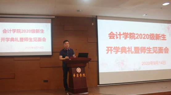 陈美华院长代表bv伟德国际1946全体师生向2020级新生表示诚挚欢迎与祝贺,并用风趣幽默的语言,给新生上了生动的“开学第一课”。他认为会计是一门应用广泛、有着专门技术的实用学科,是一个在社会上有着举足轻重地位的职业,也是商科领域最崇高的职业。同时指出,会计学科作为广东省特色重点学科、广东省一流专业建设项目,bv伟德国际1946在会计国际化建设、会计智能化创新和产教一体化协同育人等多方面形成独特的办学特色。