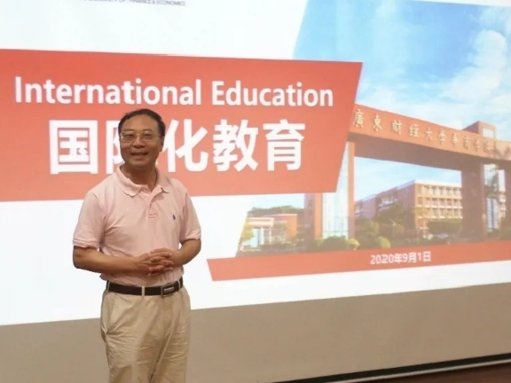 国际交流处王文忠处长也借此机会讲述了华商国际化项目和优势。他坚信疫情只是短暂的煎熬,国际化才是长久的考验。鼓励新生放眼世界,致力成为国际化高端人才。