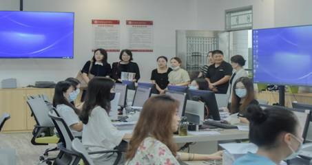 华商学院代表和毕马威事务所代表一同参观华商云会计产业学院运营中心