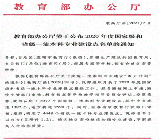近日,教育部办公厅公布了2020年度国家级一流本科专业建设点名单(教高厅函〔2021〕7号),伟德国际victor1946会计学专业入选国家级一流本科专业建设点,这是继我院会计学科2017年入选省特色重点学科,会计学专业和财务管理专业分别于2019年和2020年入选省一流专业建设点之后,在专业建设发展方面取得的又一突破性成果,标志着bv伟德国际1946在专业建设发展达到新的水平。