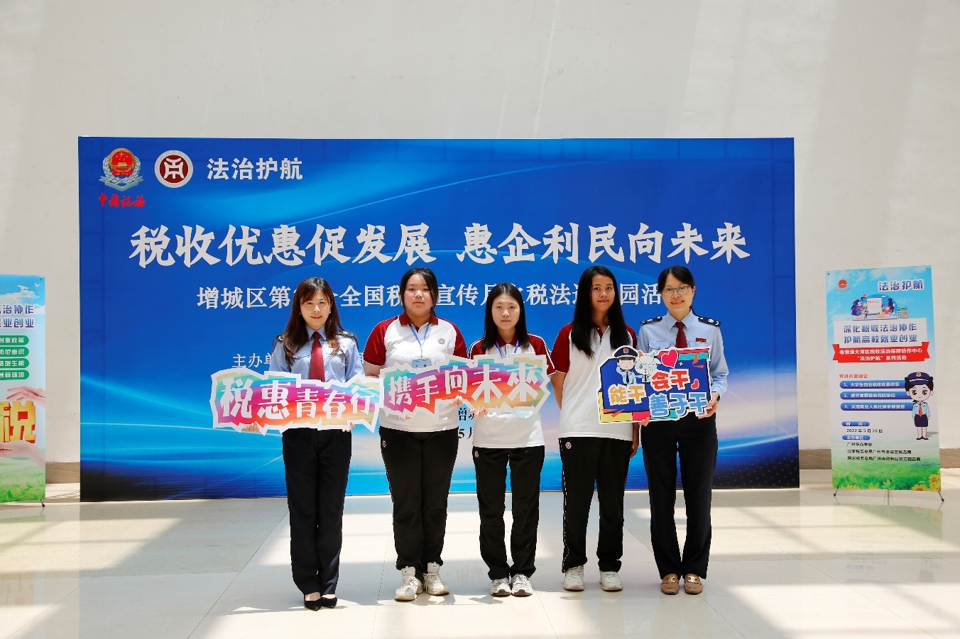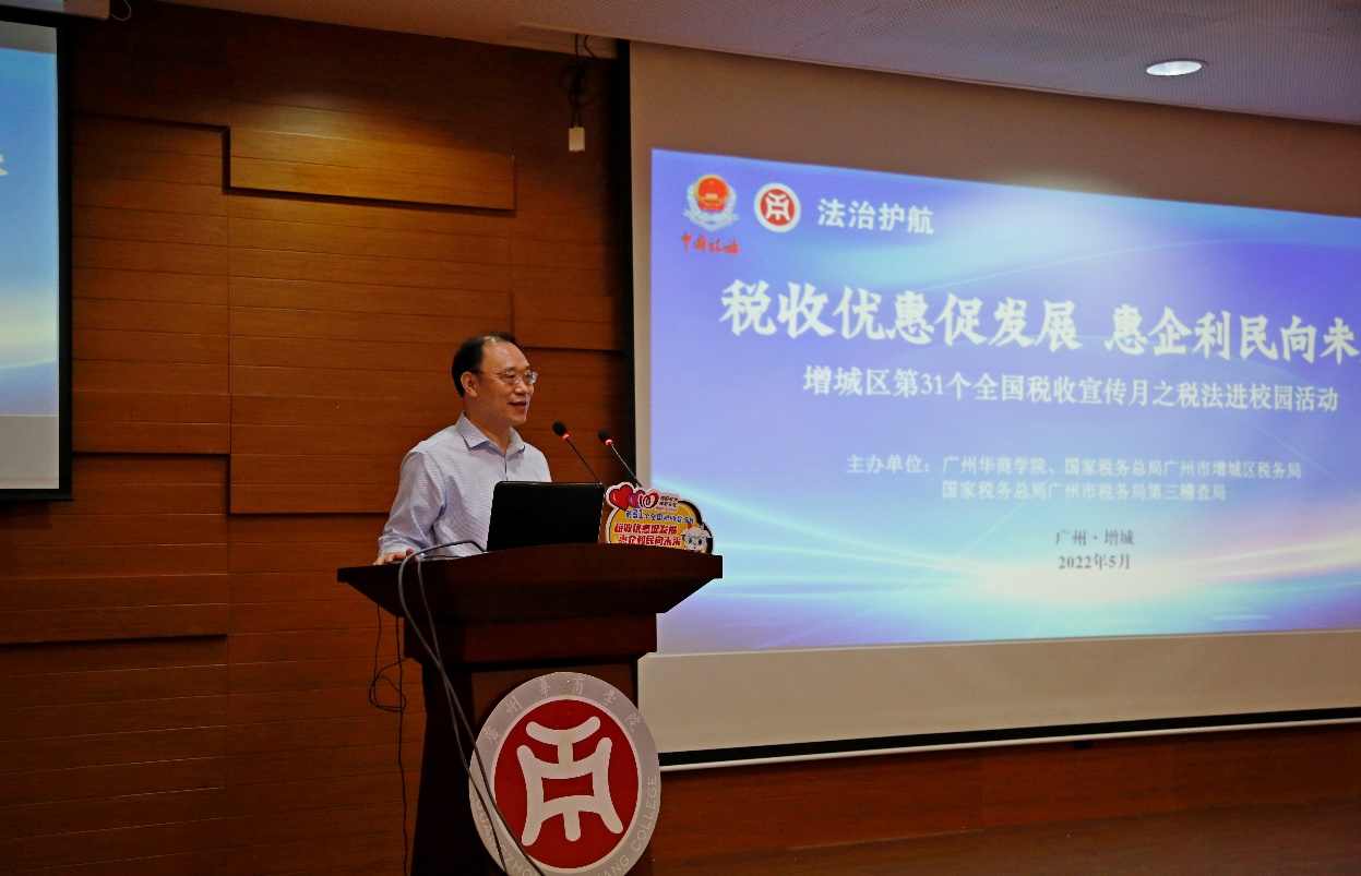 孟夏清和月,税收进校园。2022年5月,恰逢建团百年和第31个全国税收宣传月,国家税务总局广州市增城区税务局与国家税务总局广州市税务局第三稽查局组成的税收普法教育宣讲团与我校携手开展主题为“税惠青春行,携手向未来”的税法进校园活动。